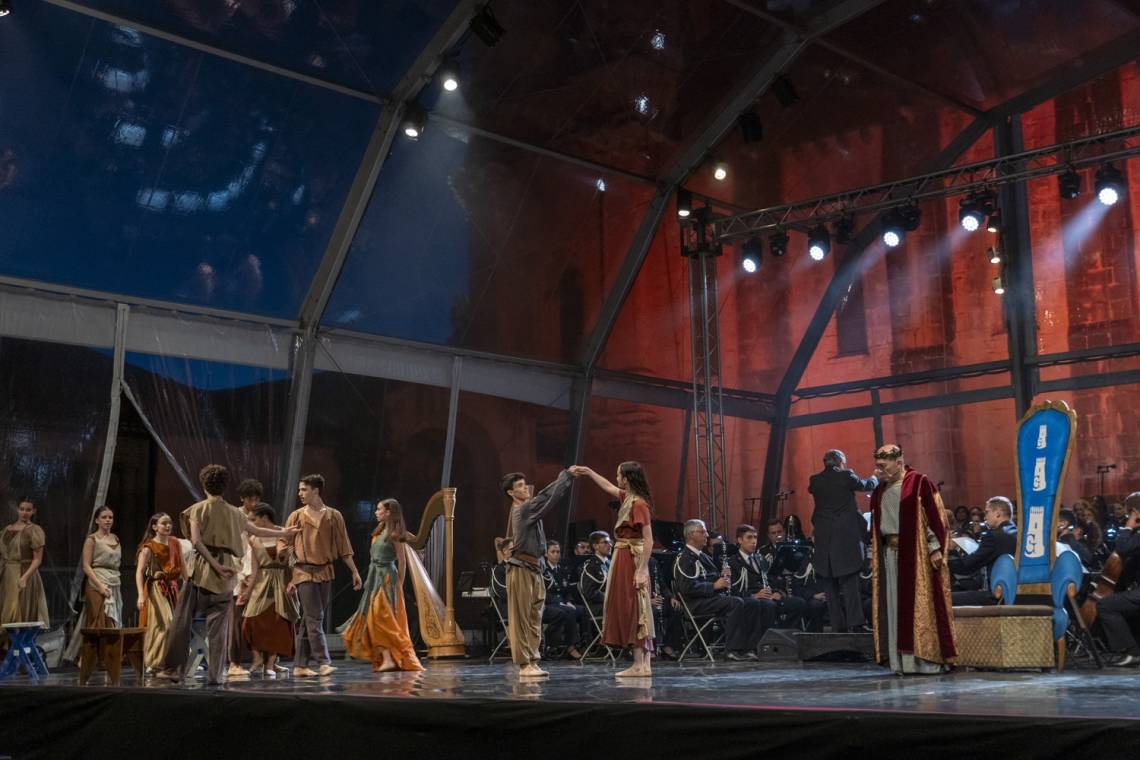 With a composition by Joly Braga Santos and a libretto by Natália Correia and David Mourão Ferreira, the Fence of Mosteiro hosted the scenic cantata Dom Garcia with 140 people on stage, including the Banda Sinfónica da Polícia de Segurança Pública, the Coro Sinfónico Lisboa Cantat and a cast of renowned performers such as Leonor Seixas and José Raposo, among others.