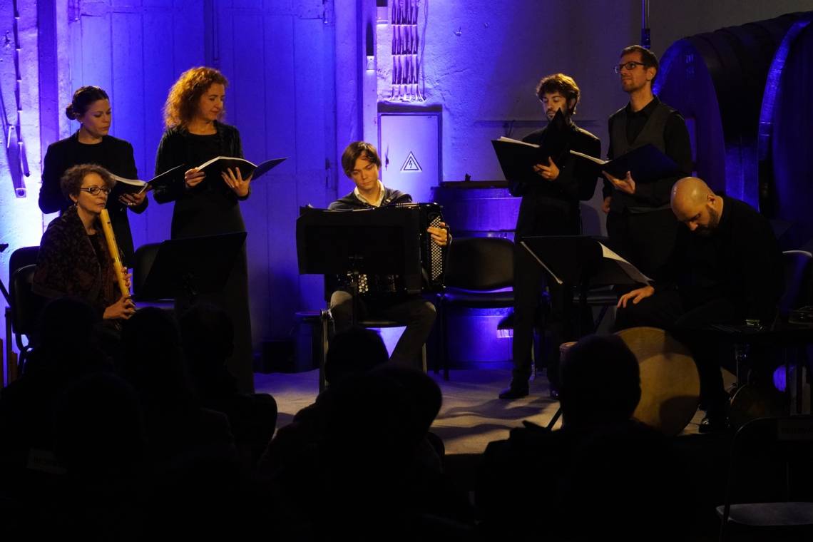 The Tetraphilla Ensemble brought to the Sala dos Tonéis of the Wine Museum of Alcobaça the programme "Elcano - 5º Centenario da Circum-Navegação da Terra", on a journey through the life of the Basque sailor Juan Sebastián Elcano (1476 - 1526), where music of his time was interpreted through works by J. Anchieta, A. Valente, M. R. Coelho, J. Encina, M. Flecha Viejo, M. Flecha Joven, P. Escobar and J. Ponce, completing the programme with the brand new work "Encontros Improváveis" by João Godinho, which premiered the previous day at the Lisbon Academy of Sciences.