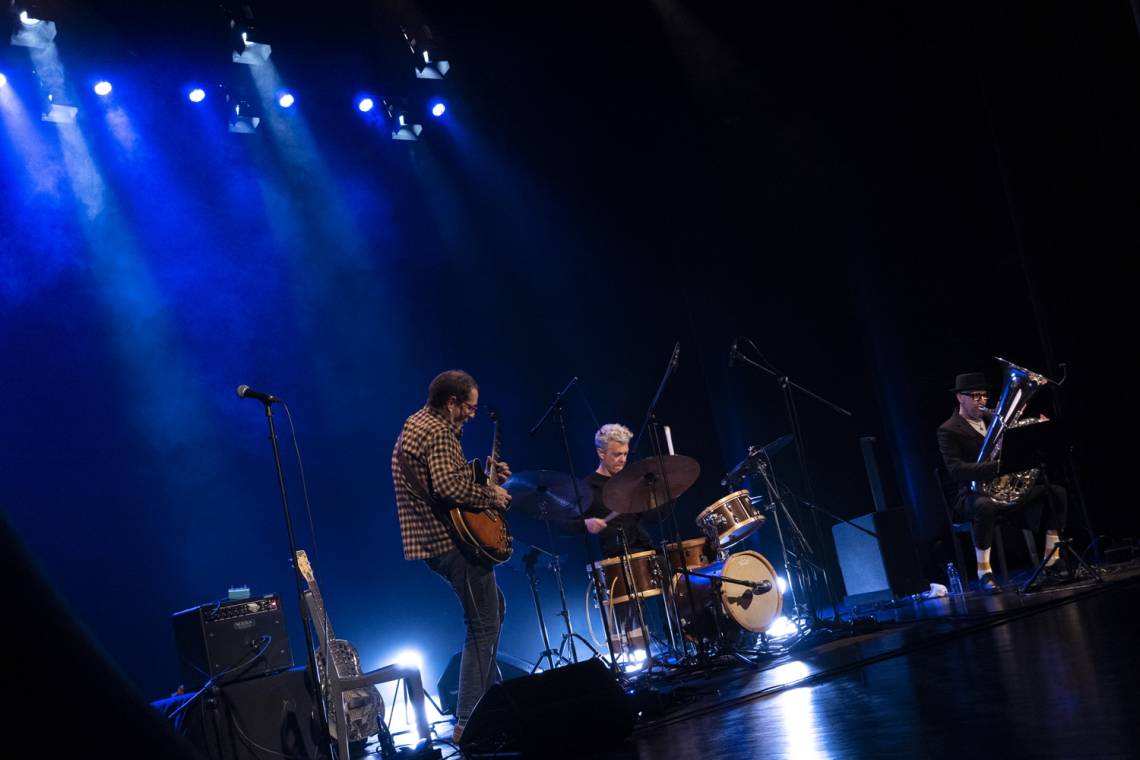 TGB, a trio formed in 2003 by some of the most acclaimed musicians in Portugal, Sérgio Carolino (tuba), Mário Delgado (guitar) and Alexandre Frazão (drums), a formation that invented its own sound space, in an ode to creative freedom, mixing jazz, rock, folk, country and more.